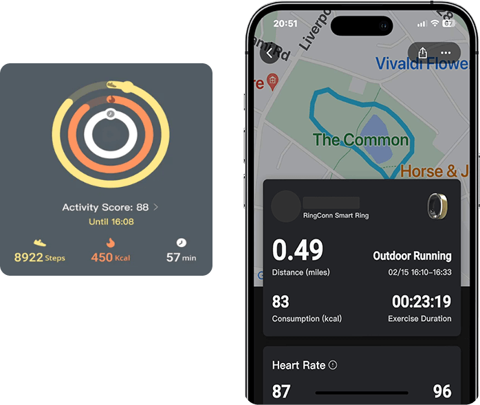 屋内/屋外でのランニング、ウォーキング、サイクリング、スポーツのアクティビティログをリアルタイムで記録します